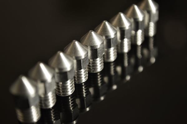 日前,來自法蘭克福的3D打印初創公司DDDMaterial最近在眾籌平臺Kickstarter推出了一款很有意思的新產品——使用優質鎢材料制成的3D打印機噴嘴。據了解,該創業團隊由于對現有黃銅材質打印噴嘴的耐久性、打印精度——尤其是在使用磨蝕性很高的材料時——不太滿意而受到啟發開發的這種噴嘴。他們希望藉此機會將更耐用、強度更高而且經濟的3D打印噴嘴推上市場。