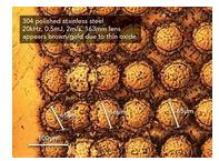 圖4:在高倍放大鏡下看到的不銹鋼材料上的激光標記(千瓦級納秒脈沖光纖激光器)