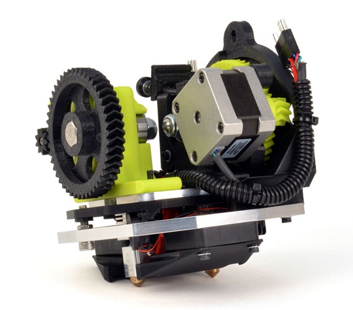 以堅持開源路線而在3D打印機市場中獨樹一幟的Aleph Objects推出的Lulzbot TAZ系列3D打印機很受用戶歡迎,不過其全金屬熱端有點小問題,就是當(dāng)打印柔性材料時用戶可能會碰上點小麻煩。為了解決這個問題,該公司在去年的時候就發(fā)布了一款可以打印柔性線材的工具頭Flexystruder,使其3D打印機用戶可以打印ninjaflex等柔性材料的。但是,如果您想同時使用柔性和剛性線材進行3D打印呢?Lulzbot公司如今也有了一個解決方案,就是他們在今天(2016年4月12日)發(fā)布的Lulzbot TAZ Flexydually工具頭V2,該工具頭可支持兩種線材同時打印,而且支持一硬一軟兩種材料的混合打印。