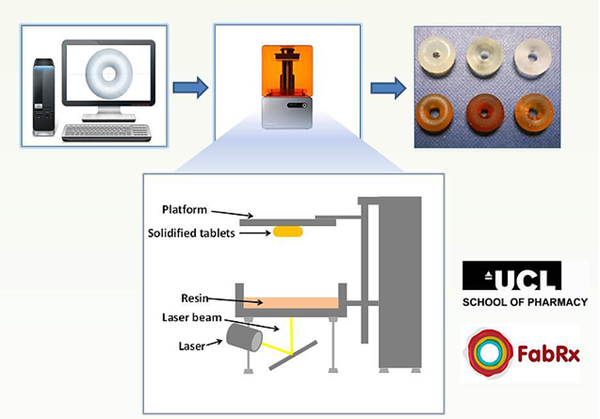 近日,倫敦大學學院( University College London)藥學院和FabRx公司的研究人員攜手合作,使用SLA技術3D打印出了口服片劑。如今他們的這一研究結結果已經在《International Journal of Pharmaceutics》雜志上發表,論文題目是《可修該劑量口服藥的光固化(SLA)3D打印(Stereolithographic (SLA) 3D printing of oral modified-release dosage forms)》,論文作者是 Jie Wang、Alvaro Goyanes、Simon Gaisford和Abdul W. Basit。