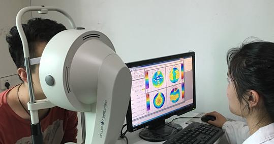 得知葛阿姨的困擾后,魏芬幫其做了pentacam角膜地形圖檢測,不僅能檢測其角膜厚度,還能預測手術后視力恢復效果。“檢測后,我告訴她術后預測可恢復視力達0.6,她表示只要不戴眼鏡就很滿意了。”