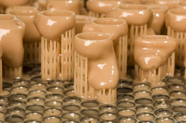 如今許多助聽器都是用光固化3D打印制造的,比如圖片中的這些,來自丹麥公司 Widex。