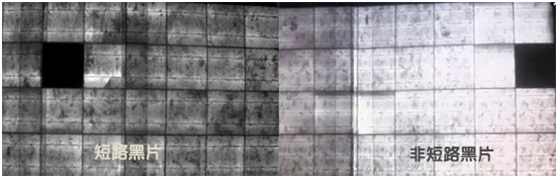 組件單串焊接過程中造成的短路;組件層壓前,混入了低效電池片造成的后果形成的短路黑片;而邊緣發亮的黑片我們稱之為非短路黑片,它主要是由于硅片使用上錯用N型片,造成PN結反,短路的電池片不能對外提供功率,輸出功率和IV測試曲線也隨之降低。造成整個組件功率和填充因子受影響。