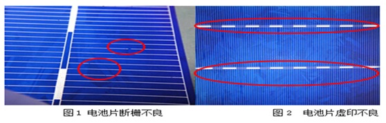 電池片斷柵是太陽能電池片在生產過程中絲網印刷時參數設置不當或絲網印刷質量不過關造成的,輕微的斷柵對組件影響不是很大,但是如果斷柵嚴重則會影響到單片電池片的電流從而影響到整個組件的電性能。