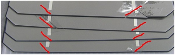 形成電池片隱裂的因素有很多。可能是各種類型的外力因素,也有可能是環境以及電池片自身缺陷造成的裂紋甚至破片。因此很難尋求統一規律或得出確定性答案。裂紋片的成像特點是裂紋在EL測試下產生明顯的明暗差異的紋路(黑線)。裂紋可能導致的后果是電池片部分毀壞或電流的缺失。