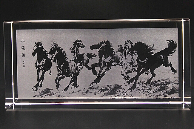 雕刻本是一門古老的藝術,一般雕刻工藝都是從外刻起,從材料外部雕出所希望的形狀,而激光卻可以像孫悟空一樣“深入腹地”去施展手腳。仔細察看,這些玻璃、水晶制品周圍全然沒有供“刻刀”進出的開口,就這一點而言,激光比孫悟空還要高明,孫猴子往人家肚子里鉆時也要有縫隙才行呢!