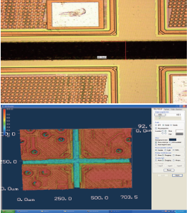 圖5:LOW-K晶圓開槽的表面效果圖和3D顯微鏡圖片。