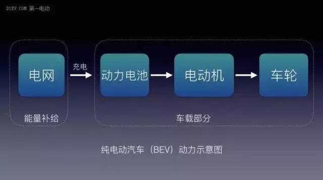 一般指純電動汽車。即只有電池提供能源供給,只有電動機(jī)提供動力,驅(qū)動汽車前行。這類車型可以實(shí)現(xiàn)行駛過程完全零排放。