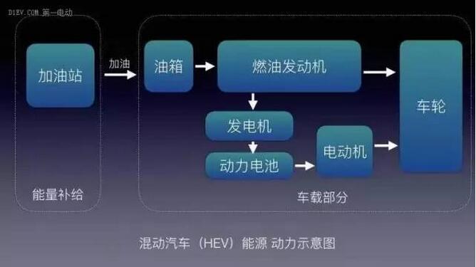 Hybrid Electric vehicle,即混合電動汽車。一般指由燃油和電池提供能源。燃油發(fā)動機(jī)和電動機(jī)提供動力。