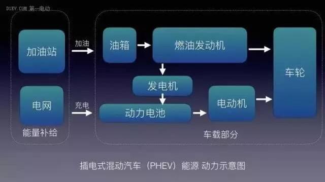 Plug-in Hybrid Electric vehicle,即插電式混合動力汽車。顧名思義,比起HEV,PHEV的車載動力電池可以通過插座進(jìn)行充電。能量提供由電池和燃油提供。動力提供由燃油發(fā)動機(jī)和電動機(jī)提供。