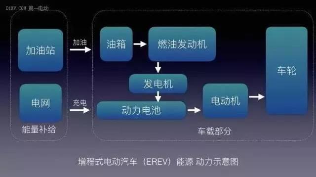 Extended-Range Electric Vehicles,增程式電動汽車,通過燃油發(fā)電,給電池充電,電動機(jī)驅(qū)動汽車行駛。