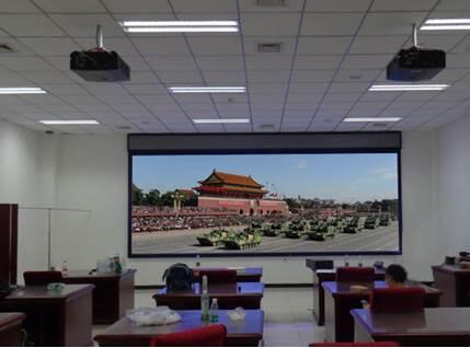 最新完工的廈門市公安局指揮情報中心激光工程投影項目,由3臺光峰6000流明超短焦激光投影機構成,0.233超低投射比,不用擔心人員通過造成的光線遮擋問題,機器采用隱藏式吊裝的方式,支架安裝,快速便捷,顯示面積13㎡。同等尺寸大小的顯示大屏,使用市面上常見的480mm*480mm箱體,至少需要50個箱體拼接而成,固定箱體尺寸造成畫面拼接大小限制,加上支架鋼結構等安裝時間,相比之下,激光工程投影機才是項目安裝的最佳拍檔。