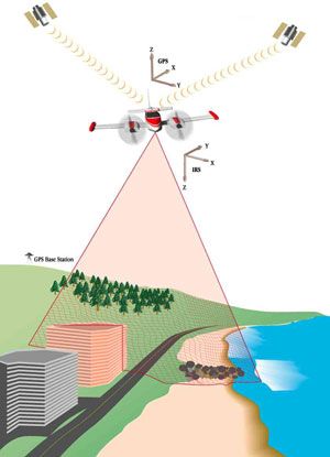 機載激光雷達(LiDAR)是一種新型主動式航空傳感器,通過集成定姿定位系統(POS)和激光測距儀,能夠直接獲取觀測點的三維地理坐標。按其功能分主要有兩大類:一類是測深機載LiDAR(或稱海測型LiDAR),主要用于海底地形測量;另一類是地形測量機載LiDAR(或稱陸測型LiDAR),正廣泛應用于各個領域,在高精度三維地形數據(數字高程模型(DEM))的快速、準確提取方面,具有傳統手段不可替代的獨特優勢。尤其對于一些測圖困難區的高精度DEM數據的獲取,如植被覆蓋區、海岸帶、島礁地區、沙漠地區等,LiDAR的技術優勢更為明顯。