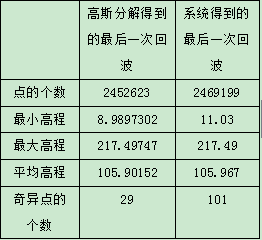 全球頂級機載激光雷達硬件廠商RIEGL生產的點云數據與李奇博士發明的高斯分解生產的點云數據進行比較得到表1所示的結果。從表中可以看出高斯分解提取的點云數量要比系統得到的要多,而且回波次數也要多,可以看出波形分解得到點云的層次感要更好。這對植被結構參數的計算,城市建模,地形斷線的提取都有很大的好處。
