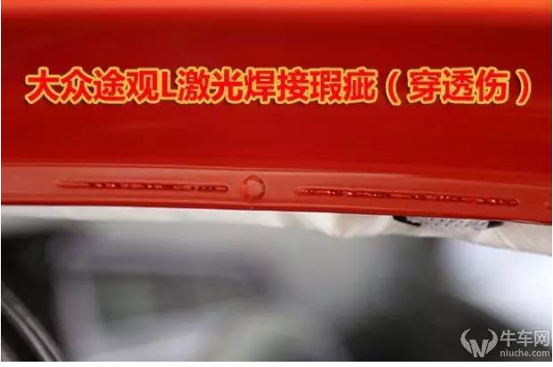 看看大眾的激光焊接工藝,其丑無比,一條條鏤空的焊縫令人唏噓啊!!!很明顯,這已經不是個案了,普遍存在于大眾車型上,造成這種情況的原因一是激光焊接的發射器功率沒調好,說白了就是太熱了燒得唄,二是激光焊工藝本身就容易產生空洞后迅速凝固。大眾官方從來沒對這個奇葩的工藝做出過任何解釋,反正也沒人買車的時候拉開車門框密封條看,就算你想看,4S店的銷售也不會允許的。