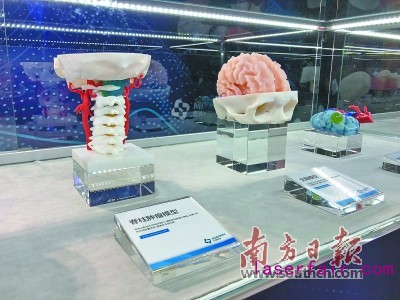 中山邁普醫學科技有限公司落戶小欖鎮,圖為現場展出的3D打印器官模型。