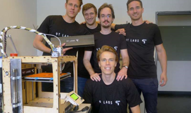 圖為9T實(shí)驗(yàn)室團(tuán)隊(duì)的成員,從左至右依次為Giovanni Cavolina,,F(xiàn)ilippo Kusch,Selçuk Ercan和Martin Eichenhofer, 最前方靠近3的打印機(jī)的為Chester Houwink。