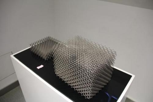 利用金屬3D打印技術(shù)打印出的鈦合金鏤空點陣結(jié)構(gòu)。李晨/攝