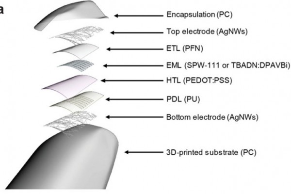 兩階段3D打印過程可以創建任何形狀的OLED屏幕,并嵌入到任何形狀的透明(或不透明)3D框架中