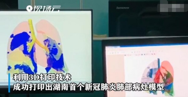 3月2日,湖南省郴州市第一人民醫院南院3D醫學打印中心利用3D打印技術,成功打印出湖南首個新冠肺炎肺部病灶模型。據介紹,根據病
