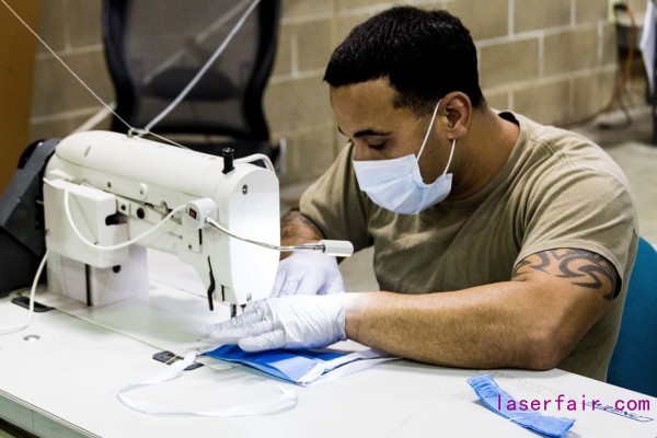 在美軍部隊中自制口罩早已不是新鮮事,比起第388戰斗機聯隊使用3D打印機的高科技生產方法,美國陸軍的特種部隊的特種兵則是直接變成了縫紉工,熟練地使用縫紉機縫制口罩。