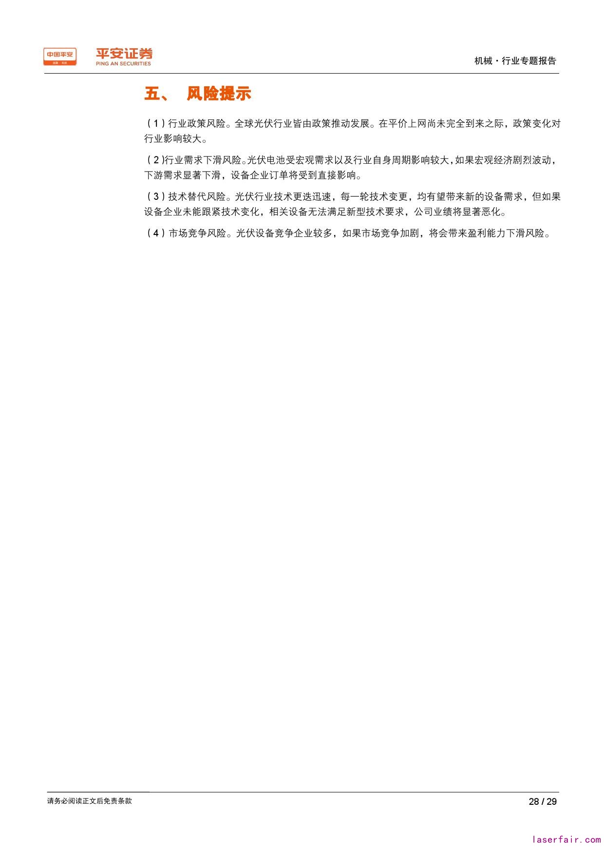 (2)行業需求下滑風險。光伏電池受宏觀需求以及行業自身周期影響較大,如果宏觀經濟劇烈波動,下游需求顯著下滑,設備企業訂單將受到直接影響。