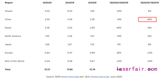 國際半導體產業協會(SEMI)的數據顯示 ,新冠疫情開始爆發的一季度,全球半導體銷售額同比增長13%;在主要經濟體中,同比增幅最大的是中國(48%)。