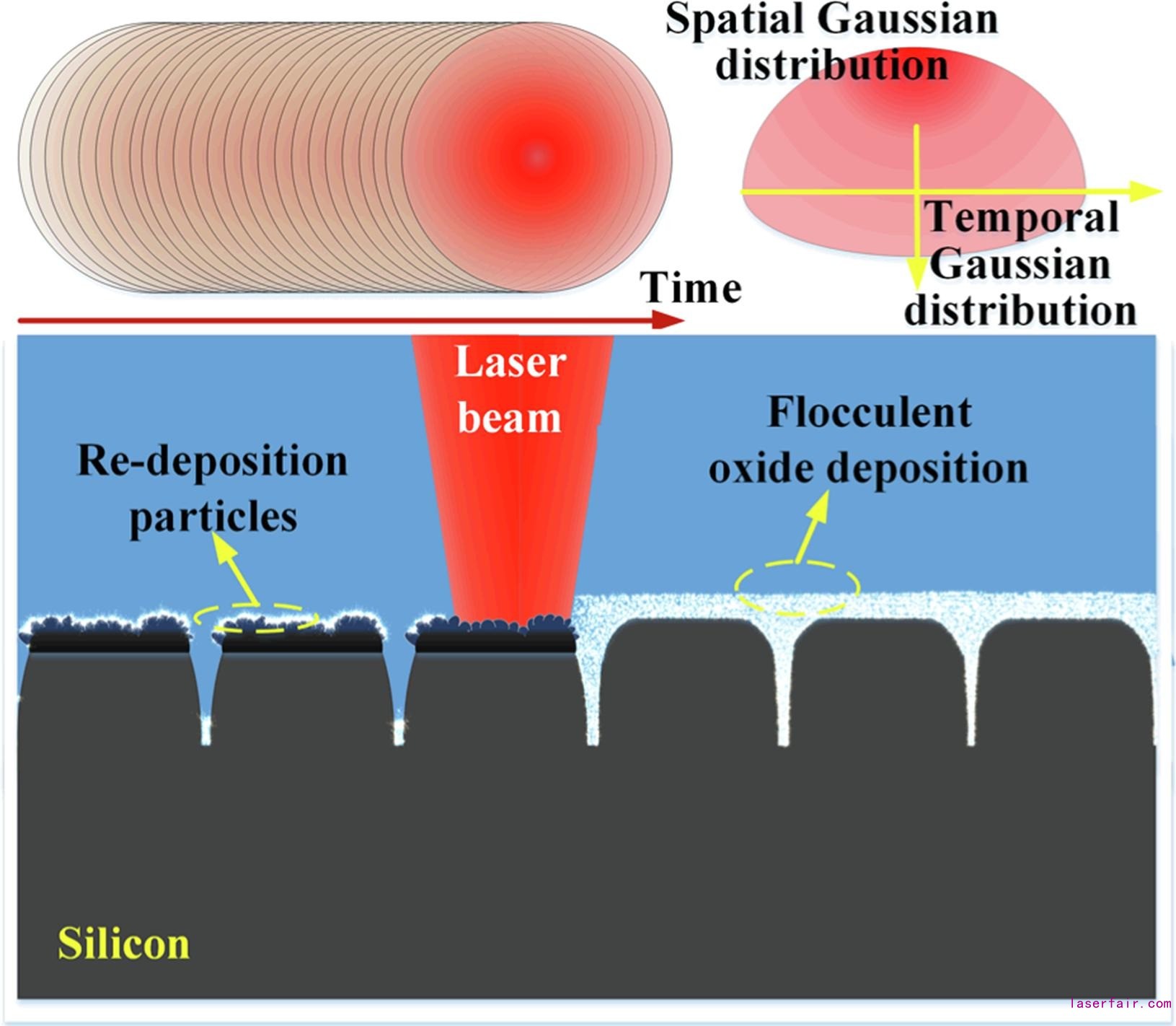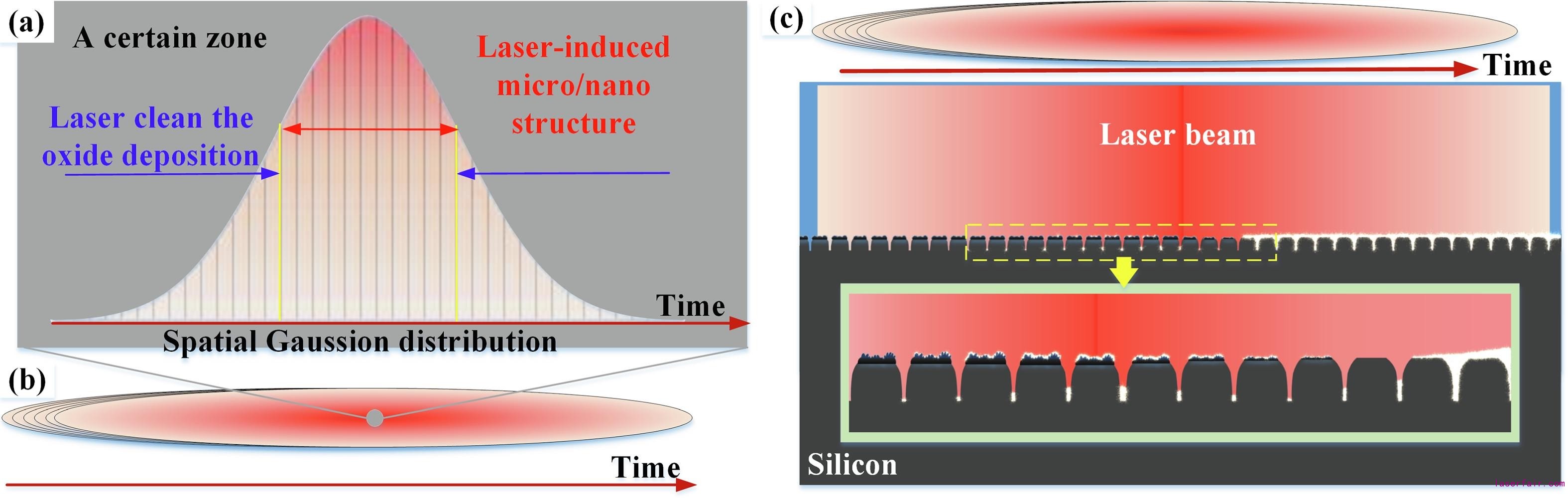 激光輻照用于微納結(jié)構(gòu)制備和在Si基材表面進(jìn)行沉積時(shí)的動(dòng)力學(xué)示意圖