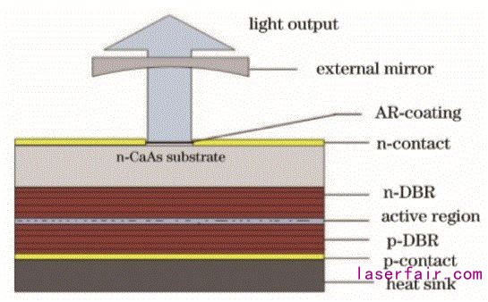 EP - VECSEL是VCSEL向OP - VECSEL發展的過渡產物,其研究主要集中在最初的近紅外波段(850~1550 nm),同時可以基于腔內倍頻有效地在可見光區域產生激光輻射,易于設計為具有多個激光元件的二維陣列,大幅提高了輸出功率。因此,EP - VECSEL適合批量生產,大大降低了制造成本。