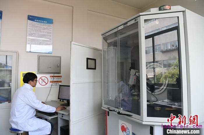 實(shí)驗(yàn)人員操作X射線(xiàn)衍射儀。(資料圖) 蘭州理工大學(xué)供圖