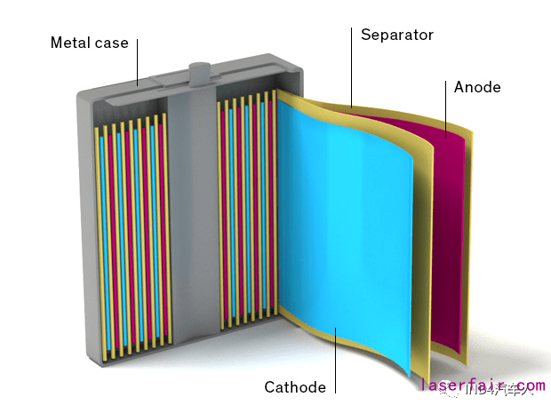 例如鋰離子電池,它是由多層非常薄的銅箔和鋁箔組成的。為了產生電荷,必須用電解質將箔與箔分開,但是要收集電荷,必須將箔的末端連接在一起。盡管超聲波焊接(可以參考本人之前的文章“ Ultrasonic Welding - 超聲波金屬焊接”)可以焊接這些箔,但是接頭的質量較差。相比較而言,藍光激光可以生成幾乎無缺陷的箔焊縫。消費電子類零件面臨類似的挑戰,它們在相對較薄的銅材料之間實現電氣和機械上的可靠連接方面也有很高的需求。在今年技術得到明顯突破之前,僅僅是藍光激光幾年前的早期技術, 500瓦的功率,就能夠產生這種近乎無缺陷的焊接。