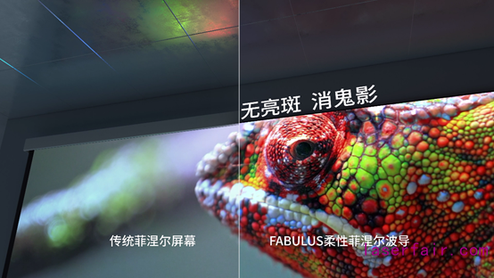 如何能兼具菲涅爾硬屏、黑柵幕兩者優(yōu)勢,同時滿足優(yōu)質觀影體驗與輕便安裝的需求?2020年11月10日,光峰科技新推出的FABULUS柔性菲涅爾波導屏,正為此而來。