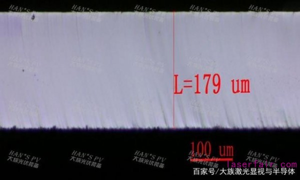大族光伏裝備的無損激光劃裂設備適用于156mm×156mm-230mm×230mm電池片。該加工技術采用應力切割原理,不存在激光熱燒蝕和機械裂片過程,可使電池片應力斷面干凈、整潔,沒有任何損傷點,極大地提高了電池片的機械強度,保證了組件加工的良率和可靠性,見圖二、圖三。