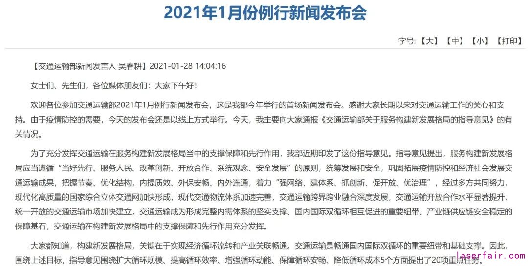 1月28日,交通運輸部新聞發言人吳春耕在例行新聞發布會上表示,交通運輸部高度重視自動駕駛技術發展和應用,為落實加快建設交通強國等重大戰略,把握全球科技和產業變革機遇,更好推動前沿技術賦能交通運輸高質量發展,在深入調研、廣泛征求意見的基礎上,制定出臺了《關于促進道路交通自動駕駛技術發展和應用的指導意見》。
