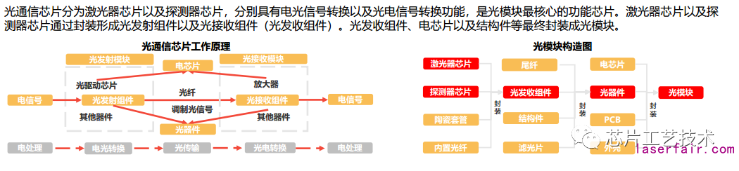 從光通信的傳輸工作原理上看,激光芯片屬于源頭的有源芯片。