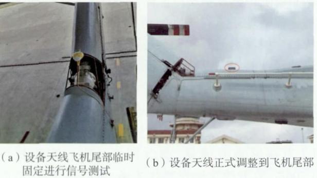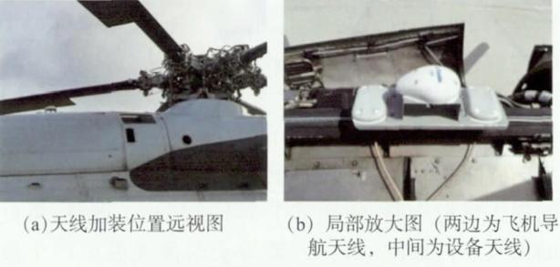 機載設備天線的安裝位置對數據精度的影響較大。試驗采用直升機平臺,飛機有主螺旋槳和尾翼穩定螺旋槳,其中主螺旋槳旋轉時覆蓋整個機身,尾翼部分不方便安裝天線,加之試驗用的GNSS天線屬于臨時性加裝,不允許對飛機機身進行改動,因此,經過討論分析,GNSS天線安裝在飛機自帶的兩個導航天線中間(見圖1),距主螺旋槳軸約2m。