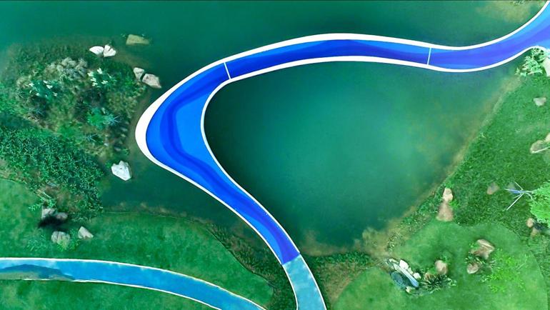 蜿蜒的橋型,靈動,優美,如舞動的彩練鋪展于碧水之上;近看,橋梁的材料細膩輕盈,從未見過——這就是位于成都龍泉驛區驛馬河公園的、全球最長的高分子3D打印橋“流云橋”。