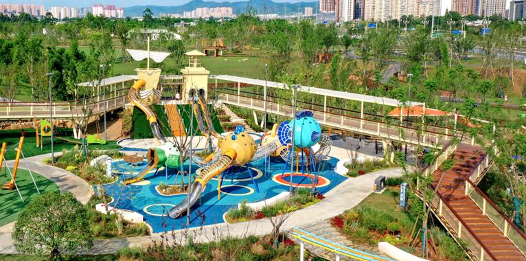 在功能布局層面,這里結合東安新城 CAZ片區、區醫院醫療組團、經開區實驗中小學教育組團、萬達商業組團等重要城市核心節點,有機植入復合功能空間,營建多元化生活場景,打造了潮玩運動場、康養生態院落、時尚球類公園等多處網紅打卡地及新經濟消費場景,發揮綠色空間的引擎作用,積極推動生態價值多元轉化。