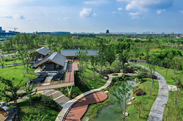 打造文旅交流、民生體驗新載體,主創設計師、中建西南院景觀院四所所長張曉翔介紹,整個公園以“古驛道”為文化主題,以“三道九驛”,即驛道、商道、文道三條特色游線,靈池憶、臥云澤、沁秀苑、絡驛場、耕讀園、云漢臺、白鶴灘、石橋井、博翠嶺九大“驛文化”特色主題園區,繪制出底蘊厚重、源遠流長的古驛畫卷,讓市民、游客能夠感受到獨特的“驛文化”,領略蜀風雅韻的獨特魅力,成為“很成都”的文旅載體。