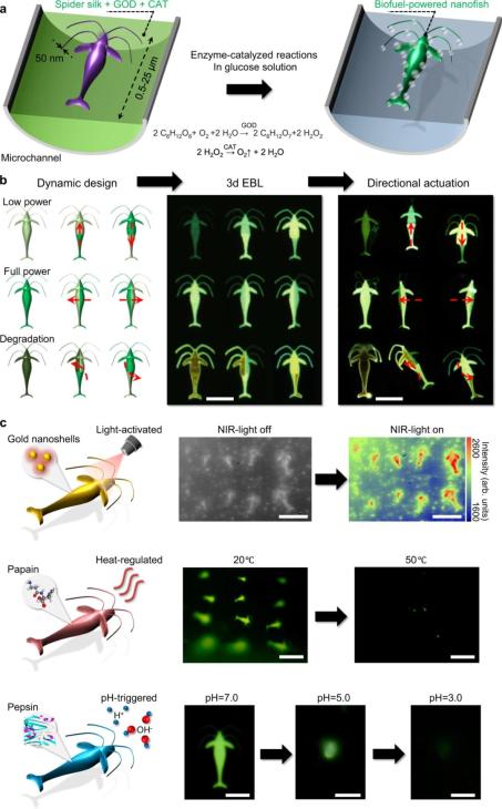 使用 3d EBL 制造的生物燃料驅動的酶輔助蜘蛛絲納米魚
