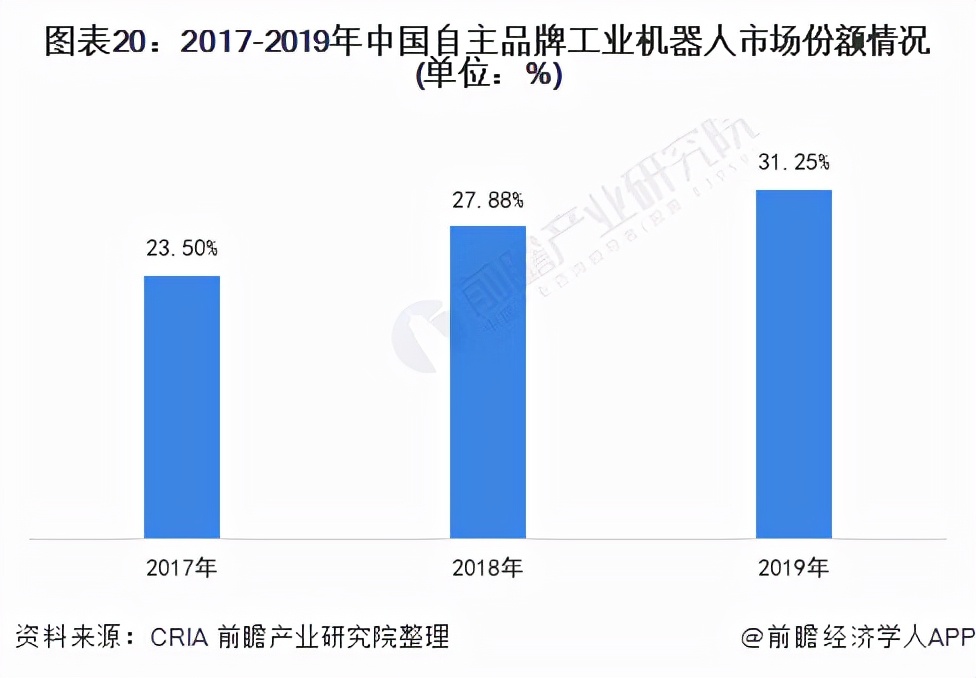 而如今,國產(chǎn)機器人企業(yè)卻隱隱有了奮起直追的趨勢。最為出名的就是南京埃斯頓、安徽埃夫特、廣州數(shù)控、新松四家企業(yè),被稱為“國產(chǎn)四小龍”。據(jù)有關數(shù)據(jù),純國產(chǎn)工業(yè)機器人的市場占有率一直穩(wěn)定上升,在21年有望突破40%。