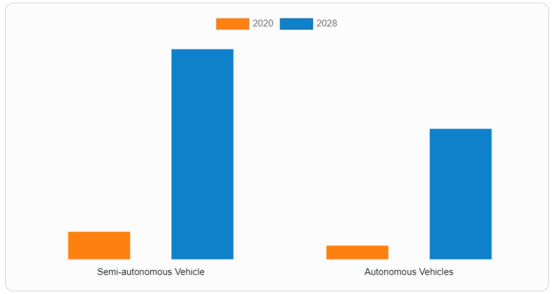 圖4:汽車激光雷達(dá)市場(chǎng)分為半自動(dòng)駕駛和全自動(dòng)駕駛汽車應(yīng)用。(圖片來(lái)源:Allied Market Research)