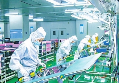9日,在上達電子(黃石)股份有限公司,工人們正在對柔性電路板進行生產組裝。