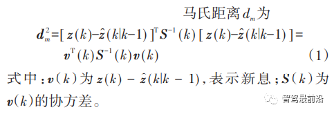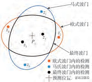 隨后使用馬氏距離作為馬氏波門的閾值 γm,對(duì)滿足歐式波門的檢測(cè)結(jié)果再進(jìn)行馬氏距離的計(jì)算,濾除符合歐式波門但不符合馬氏波門的檢測(cè)。