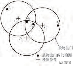 在進(jìn)行雙波門濾波后,對(duì)滿足雙波門閾值的檢測(cè)進(jìn)行關(guān)聯(lián)匹配。若幾個(gè)較近的軌跡波門內(nèi)不存在相互干擾的檢測(cè)結(jié)果,則使用波門內(nèi)馬氏距離最近的檢測(cè)目標(biāo)作為匹配目標(biāo)。如存在如圖3所示的復(fù)雜情況,即預(yù)測(cè)位置P2其馬氏波門內(nèi)的檢測(cè)z2與預(yù)測(cè)位置P1的距離最近,檢測(cè)z3與預(yù)測(cè)位置P3距離最近的情況,則使用匈牙利算法作為匹配算法,將其代價(jià)矩陣定義為Cmn(m為已有軌跡數(shù),n為所有檢測(cè)數(shù)),其中元素為cij。