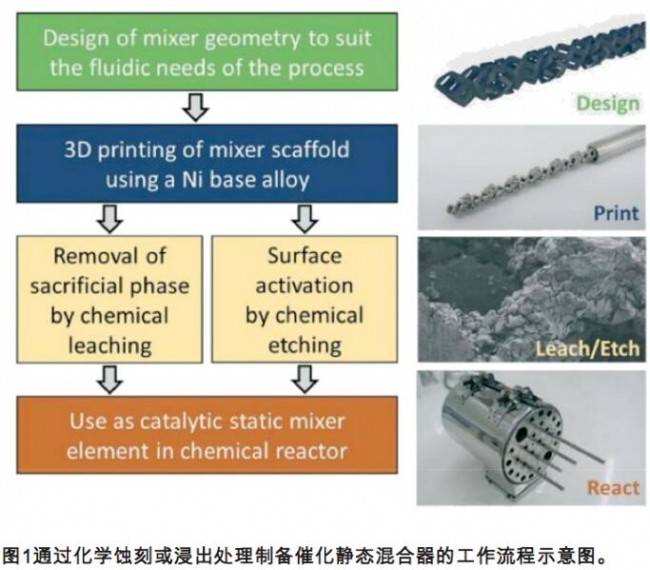 本期,3D科學(xué)谷通過澳?利亞墨爾本的聯(lián)邦科學(xué)與?業(yè)研究組織 (CSIRO) 支持的 FloWorks Group 的研究,這項研究結(jié)合了增材制造(金屬3D打印)和減材(化學(xué)蝕刻)方法,用于制造選擇性加氫香料的新型結(jié)構(gòu)化鎳催化劑靜態(tài)混合器。