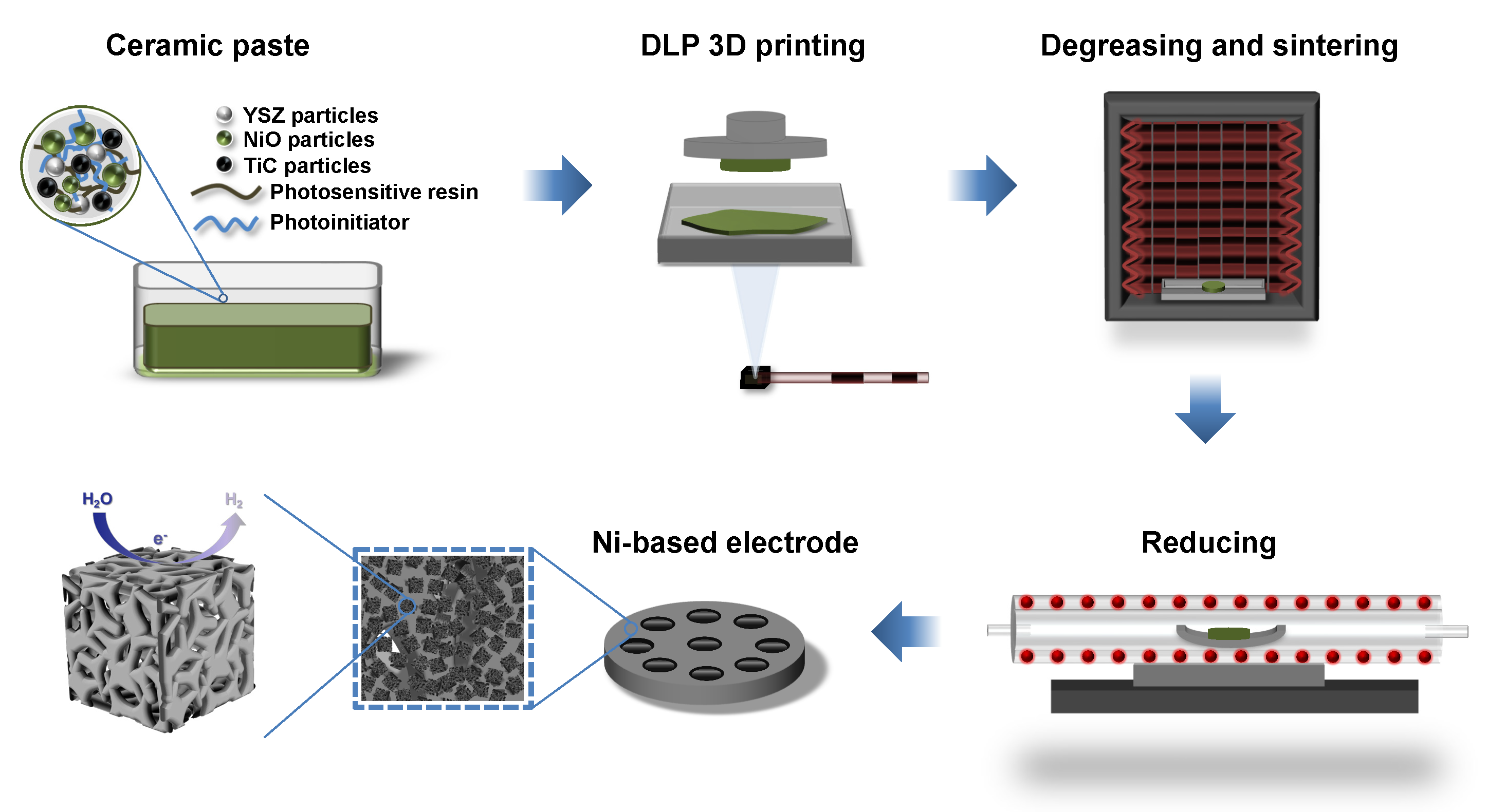 圖1. 3D打印制備整體式鎳基堿性析氫電極過程