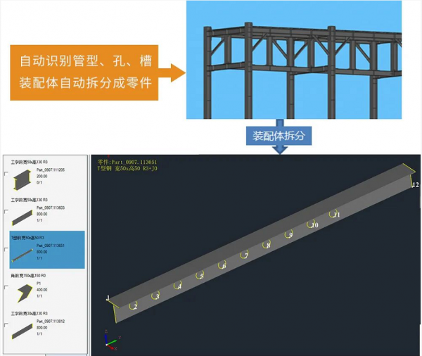 WiseCAM Tube維宏激光管材切割控制系統支持igs、stp文件的導入。用戶可直接將鋼結構裝配體導入軟件,軟件自動識別出其中的鋼材零件,無需人工拆數模,方便快捷。