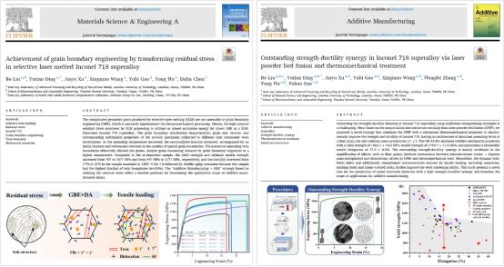 近期,天水師范學院機電與汽車工程學院教師劉博與蘭州理工大學省部共建有色金屬先進加工與再利用國家重點實驗室、金川鎳鈷資源綜合利用國家重點實驗室合作的激光增材制造鎳基高溫合金孿晶界面調控研究取得重要進展,研究成果連續發表在國際材料科學領域TOP期刊《Materials Science and Engineering A》(IF: 6.044/Q1)和國際工程技術領域TOP期刊《Additive Manufacturing》(IF:11.632/Q1)上,第一作者均為劉博老師。