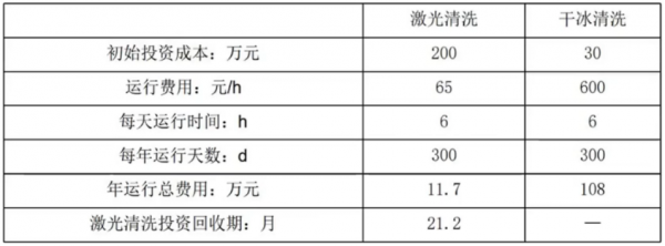 激光清洗對比干冰清洗,運行成本可忽略不計